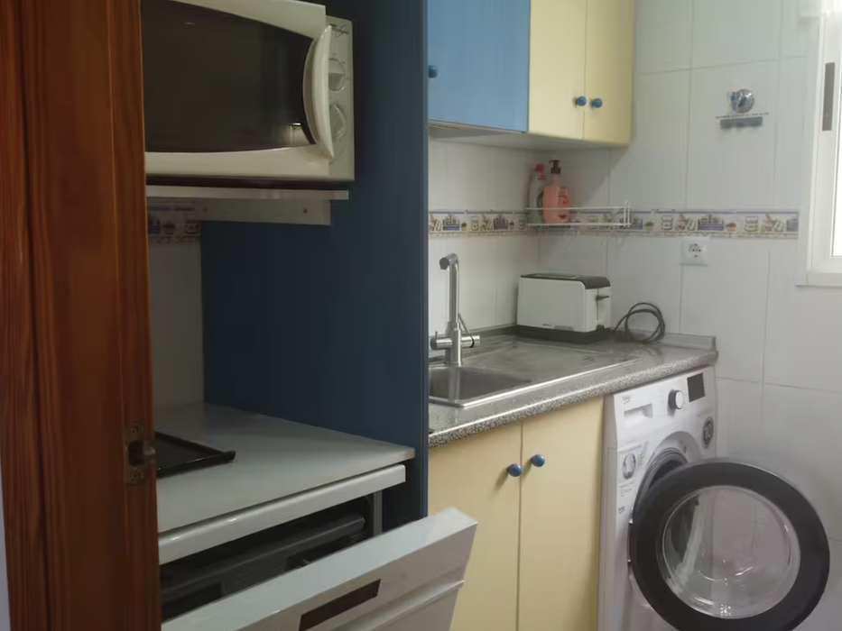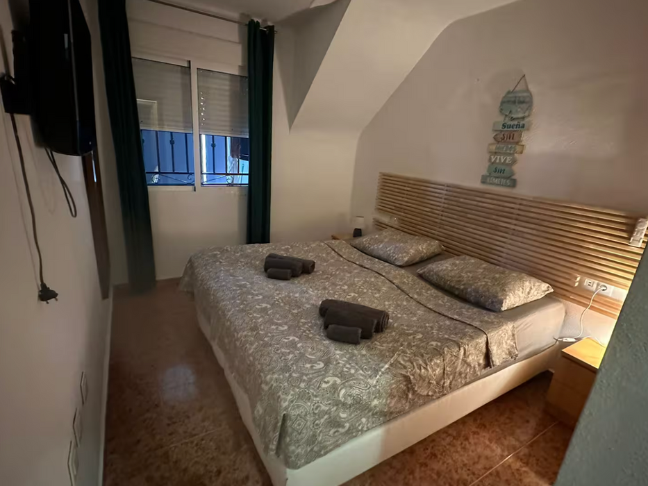 Casita Stam is a stylish and serene retreat located on Vistabella Golf near Torrevieja. With two bedrooms, a bright living room, enclosed balcony, private rooftop solarium and access to two communal pools, comfort meets convenience. Perfect for golf and padel lovers. Free baby cot available for a 5th guest (baby).